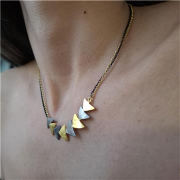 Κολιέ απο επιχρυσωμένο και επιροδιωμένο ασήμι με τρίγωνα.