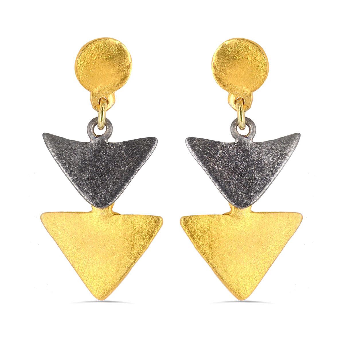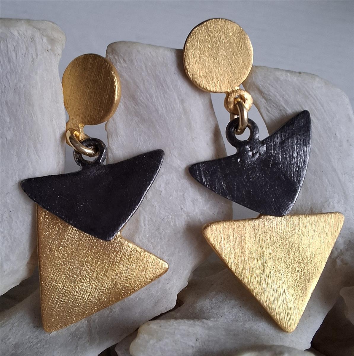 Σκουλαρίκια απο επιχρυσωμένο και επιροδιωμένο ασήμι με τρίγωνα.